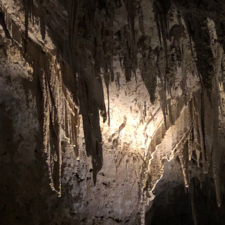 I took a million photos, all disappointing compared to how amazing it looked in person. Even though every photo looked dark, discolored, or a little blurry I couldn’t help but try to capture what I was seeing. After a long descent, twists and turns, ducking and maneuvering through smaller tunnels I reached the Big Room. Which I overheard a ranger say to another visitor is about six to seven football fields in length. The Big Room did in fact feel like a big room. The three tallest/largest stalagmites were located in this part and an overlook of an even bigger section of the cavern can be looked down into from the Big Room. The intricate and delicate looking formations were interesting to see up close. Some looked like draped fabric, while others looked like blobs and growths on the stone walls. Thousands of spikey stalactites hung from the ceiling, which I looked up at very frequently to see if I was in direct shot of one that might happen to fall.
